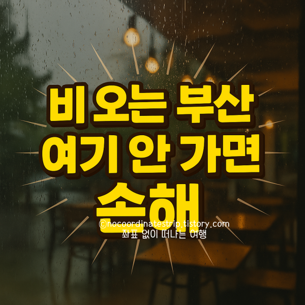 비만 오면 모든 계획이 캔슬? 아니죠! 부산 사람은 비 와도 논다! 그런데 막상 비 오는 날엔, 어딜 가야 할지 몰라 멍하니 폰만 보다 하루 다 가는 경우 많잖아요. “야, 그냥 카페 갈까?” “또?” 이렇게 반복되는 패턴 이제 그만~!