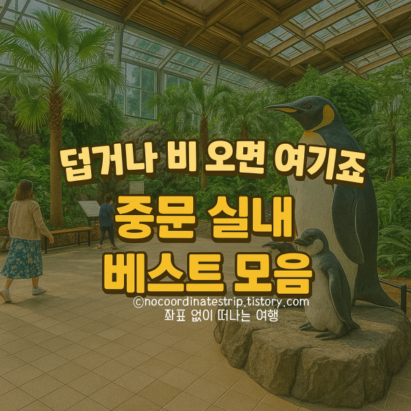 제주 서귀포 중문, 멋진 바다와 하늘만 생각하고 떠났다가 날씨 때문에 고민해본 적 있으신가요? 비가 오거나, 바람이 세차게 불거나, 한여름 정오의 햇빛이 너무 뜨거운 날이면 야외 명소들은 금세 불편해지죠. 그럴 때 필요한 건 날씨에 상관없이 즐길 수 있는 실내 여행지예요.