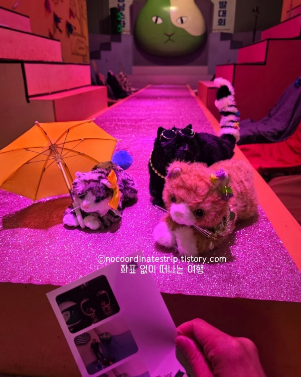 아이와 함께 방문하면 웃음이 끊이지 않고, 체험 내내 즐거운 추억을 쌓을 수 있어요. 여행 중 우연히 들른 분들도 “또 하고 싶다”라는 아이의 말에 만족도가 높고, 제주 여행에서 비나 바람 때문에 외부 활동이 어려운 날에도 훌륭한 대안이 됩니다. 포토스팟마다 사진을 남기며 즐기는 체험형 코스라 가족 단위뿐만 아니라 고양이를 좋아하는 모든 분들에게 중문 실내 놀거리 추천합니다.