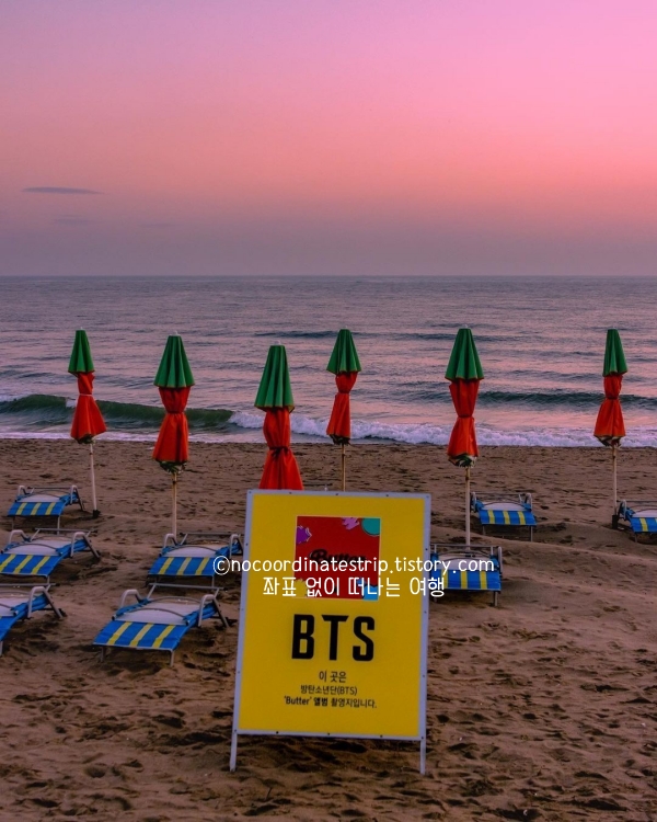 완만한 수심 덕분에 가족 여행객들이 많이 찾는 해변이에요. 여름 개장 시기에는 화장실·샤워장·음수대 등 편의시설이 모두 운영되고, 인근에는 캠핑장도 있어 바닷가 캠핑이나 차박을 즐기기에 좋아요. 덕봉산 해안 생태탐방로와 연결돼 있어 해변 산책과 숲길 트래킹을 함께 즐길 수 있다는 게 매력이고, BTS 앨범 ‘Butter’ 촬영지로도 알려져 있어 포토 스팟을 찾는 여행객 발길이 이어집니다.