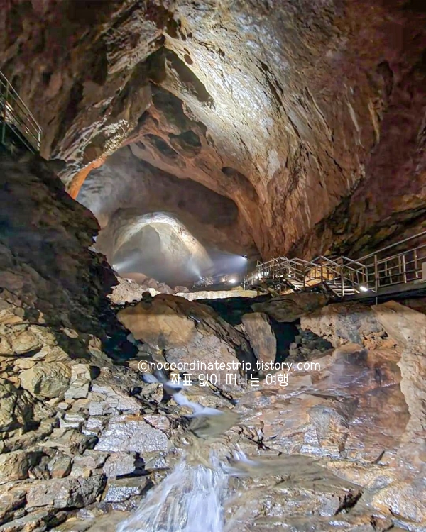 웅장한 동굴 내부의 규모에 압도됐고 빛과 종유석이 어우러진 풍경이 마치 지하 미술관 같았습니다. 여름철에는 바깥보다 훨씬 시원해서 최고의 피서지였고 비 오는 날에도 내부가 쾌적해 날씨 영향을 덜 받는 삼척 비오는날 실내 가볼만한곳이에요.