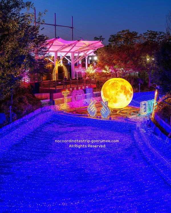 해가 넘어가고 조명이 켜지는 순간, 축제장은 전혀 다른 공간으로 변합니다. 낮의 부드러운 풍경은 사라지고, 밤에는 꽃잎마다 작은 별이 내려앉은 듯 반짝였죠. 입장료가 무료라 부담 없이 들어왔는데, 그만큼 사람들의 표정에도 여유가 가득했어요. 주차장도 넓고 길이 정돈되어 있어서 가족 단위로 오기 좋았고, 중간중간 마련된 벤치에 앉아 커피 한 잔 마시며 여유를 즐기기에도 참 좋았습니다. 국화 향기와 빛이 함께 머물기 때문에 11월 가볼만한곳 베스트 10 안에 이름을 올릴 만한 충분한 이유가 있었습니다.
