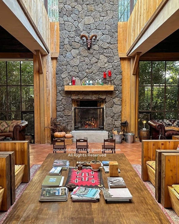 겨울이라 그런지 입장하자마자 따뜻한 공기가 확 들어왔다. 천장이 높고 중앙에는 벽난로가 설치돼 있었는데, 실제로 장작이 타고 있어서 바깥 바람과 온도 차가 확실히 느껴졌다. 실내는 테이블 간 간격이 넓게 떨어져 있어서 사람들끼리 대화하거나 여유 있게 앉아 있기에 괜찮았다.