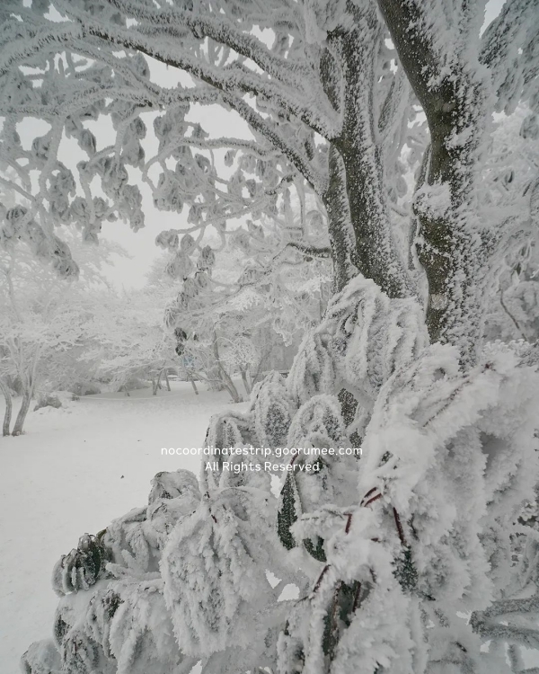 습지 입구를 지나면 길게 이어진 데크 길이 시작된다. 겨울엔 이 데크 위에도 눈이 덮여 걷는 내내 사각사각 발소리가 들린다. 눈 덮인 나무들 사이를 걷는다는 건 생각보다 특별한 경험이다. 제주에서 이런 풍경을 만나기란 쉽지 않다. 한라산이 보여주는 겨울의 얼굴을 제대로 마주하려면, 1100고지습지를 거쳐 가는 게 가장 빠른 길이기도 하다. 1월에 제주를 찾았다면 눈 구경은 여기서 해결하는 게 제일 확실하다.