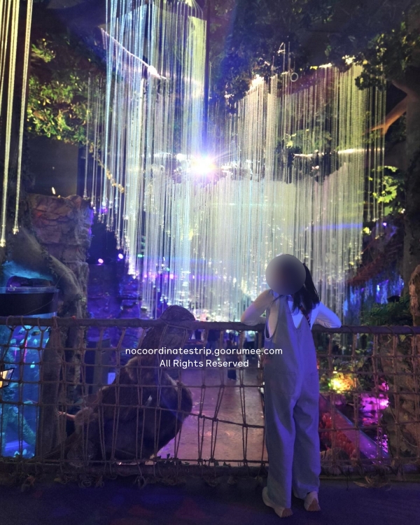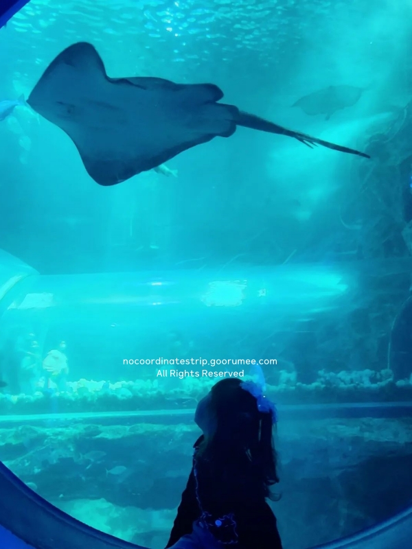 메인 수조의 거대한 규모에 압도되어 한참을 머물다가, 공연 시간표를 미리 확인해 둔 덕분에 다리가 아플 때쯤 앉아서 공연을 관람하며 한숨 돌릴 수 있었죠. 입장 마감 1시간 전인 저녁 6시 전까지는 도착해야 여유 있게 볼 수 있고, 아이가 특히 좋아했던 구간은 마지막에 한 번 더 들러보는 방식으로 동선을 짜니 만족도가 훨씬 높더라고요.