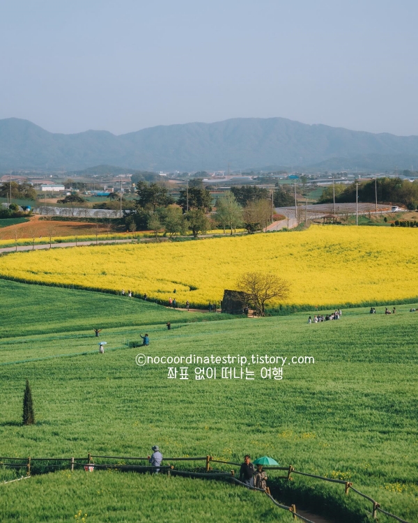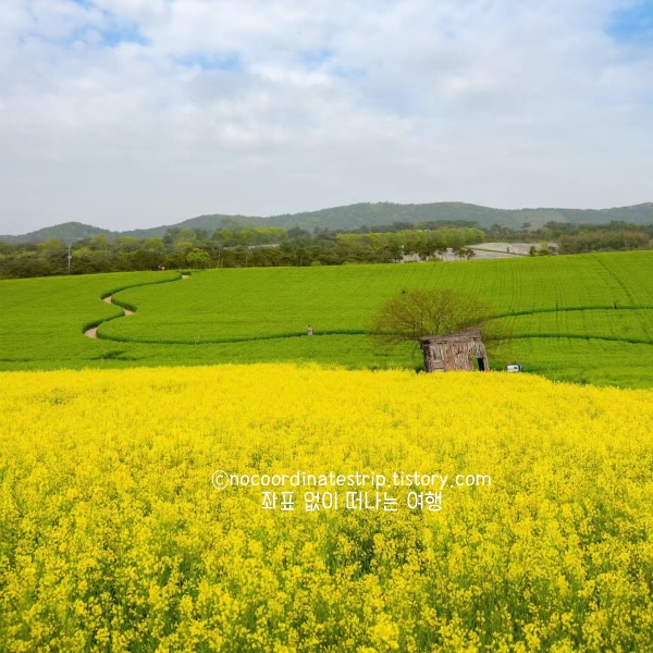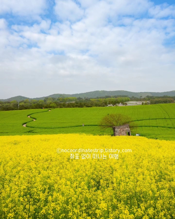📌 특이사항: 유채꽃도 함께 피어 있어 두 가지 풍경을 동시에 즐길 수 있음