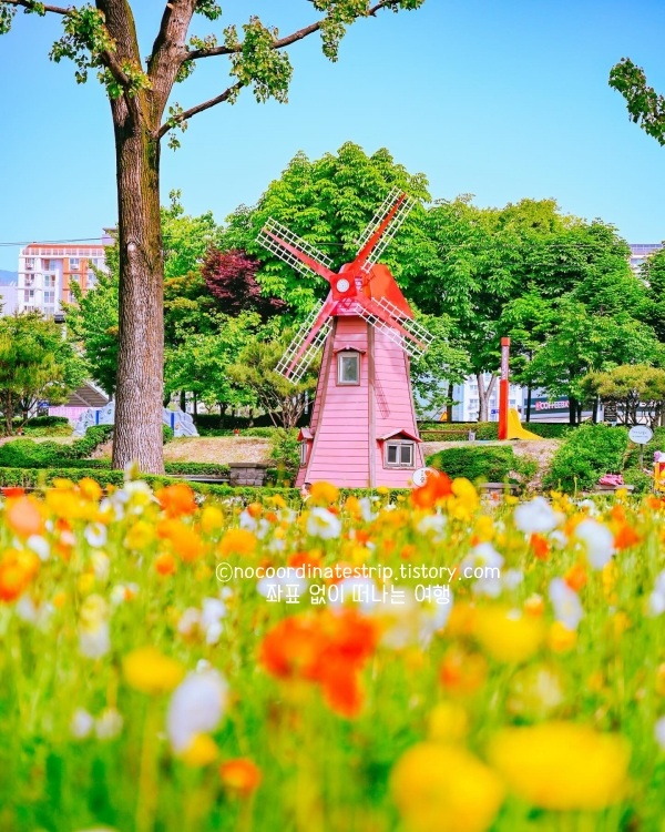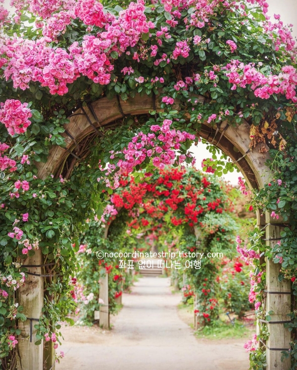 입구 장미터널과 중앙 화단, 풍차 앞까지 포토존이 곳곳에 숨어 있고, 사람 키보다 큰 장미동굴에 들어서면 꽃에 파묻힌 것 같은 사진도 찍을 수 있어요. 햇살 좋은 오전 시간엔 장미 위로 그림자가 드리워져, 어떤 앵글로 찍어도 감성 한 스푼 더해진 인생샷이 나오더라고요.