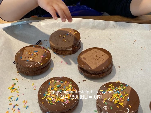 체험 시간은 약 50분, 짧지 않은 시간이었는데도 아이는 “벌써 끝났어?”라고 할 만큼 몰입했어요. 진한 초콜릿 향 속에서 만들어낸 초코파이와 그걸 자랑스럽게 꺼내는 아이의 얼굴은 지금도 생생해요. 달지 않은 버터크림을 사용해서 걱정 없이 먹을 수 있었던 것도 좋았고요. 전주 비오는날 가볼만한곳 베스트 10, 아이와 함께 조용히 따뜻한 공간에서 웃고, 만들고, 포장까지 하는 이 시간이 참 고마웠어요. 전주에서 아이와의 실내 시간을 찾고 있다면, 여기는 아주 든든한 선택입니다.