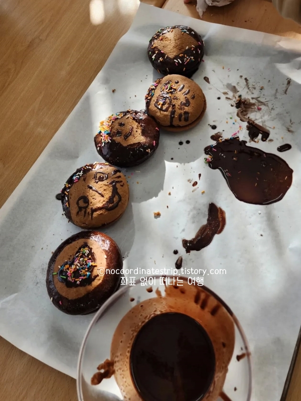 체험 시간은 약 50분, 짧지 않은 시간이었는데도 아이는 “벌써 끝났어?”라고 할 만큼 몰입했어요. 진한 초콜릿 향 속에서 만들어낸 초코파이와 그걸 자랑스럽게 꺼내는 아이의 얼굴은 지금도 생생해요. 달지 않은 버터크림을 사용해서 걱정 없이 먹을 수 있었던 것도 좋았고요. 전주 비오는날 가볼만한곳 베스트 10, 아이와 함께 조용히 따뜻한 공간에서 웃고, 만들고, 포장까지 하는 이 시간이 참 고마웠어요. 전주에서 아이와의 실내 시간을 찾고 있다면, 여기는 아주 든든한 선택입니다.