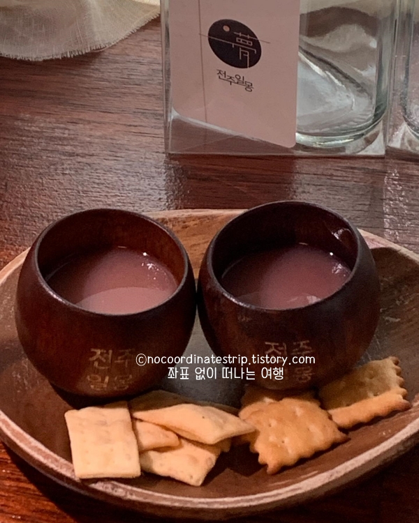 전주 한옥마을 안쪽, 비 내리는 골목 끝에 숨어 있던 전주일몽. 잔잔한 빗소리 들으며 들어선 이곳에서 따끈한 모주 한 잔을 직접 만들어보는 체험은 생각보다 더 특별했어요. 태블릿으로 조리법을 따라가며 직접 끓이고, 향긋한 계피 냄새가 퍼지면 주변 공기까지 따뜻해지는 기분이 들죠. 체험은 어렵지 않고, 재료도 잘 준비되어 있어서 처음 하는 사람도 부담 없어요. 직접 만든 모주는 포장도 예쁘게 할 수 있어서 기념품으로도 손색없습니다.